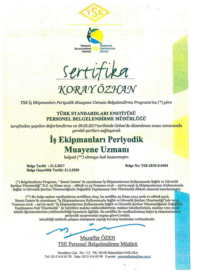 Sertifikalarımız